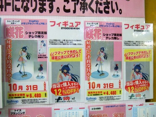2006年10月22日に開催予定のドリームパーティー2006秋でも販売される予定の、「DreamPartyメモリアルフィギュアVol.1」(サンプル展示)の店頭販売バージョンの予約受付が、ソフマップ本店にて開始していました。