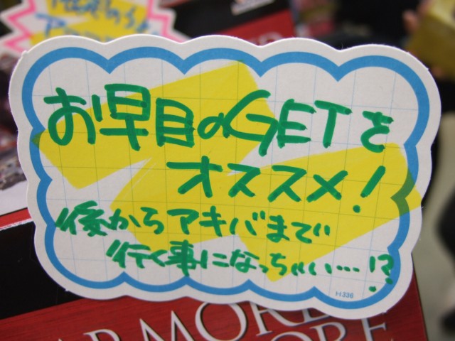 POPには、「お早めのGETをオススメ! あとでアキバまで行くことになっちゃい・・・?」とされていました。