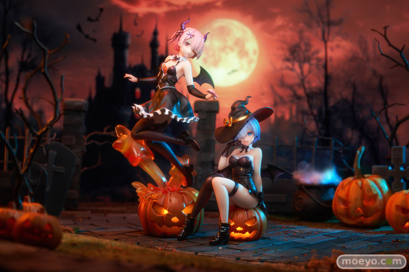 2024年10月からTVアニメ 3rd seasonが放送開始された『Re:ゼロから始める異世界生活』より、レムとラムが美しい魔法使い姿のフィギュアとなって登場です。魔法使い風コスチュームで着飾ったレムとラムは、どんないたずらも許される程の可愛さに仕上がっています。シルエットラインを綺麗に見せるコスチュームは、生地の張り感から感じる上品で落ち着いたボディーライン・手袋やブーツなどの装飾品も、造形を丁寧に作られています。腰掛にされたジャック・オーランタンが、座られて喜んでいるように見えてきます。