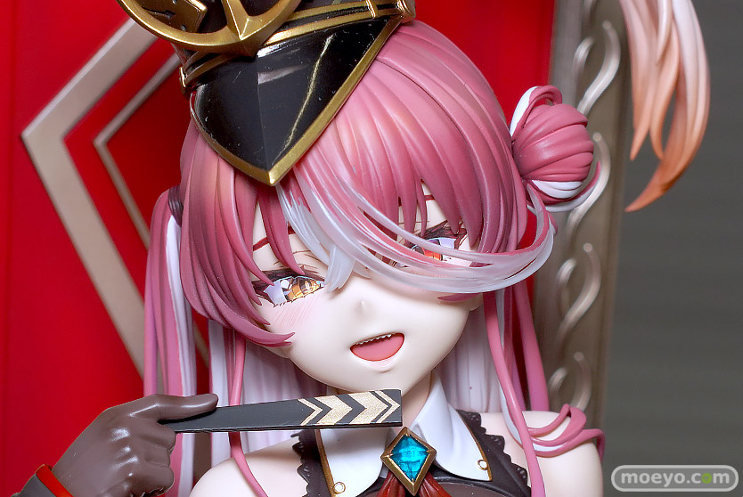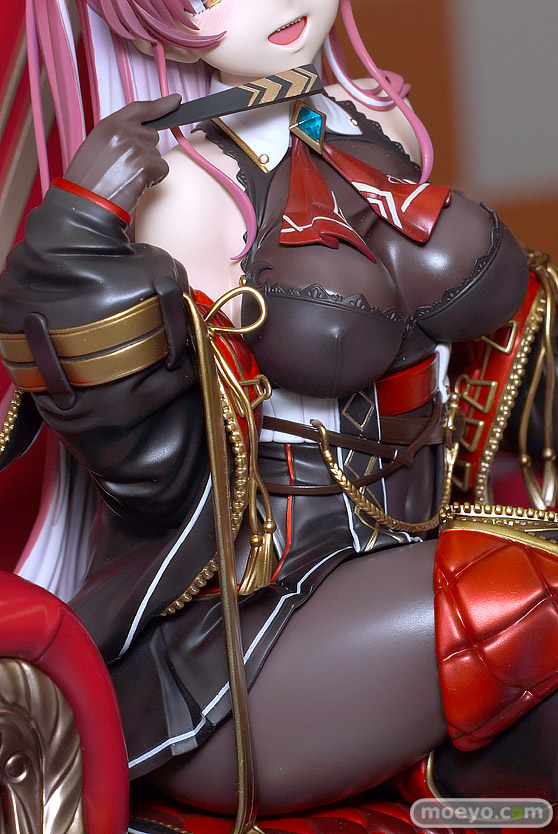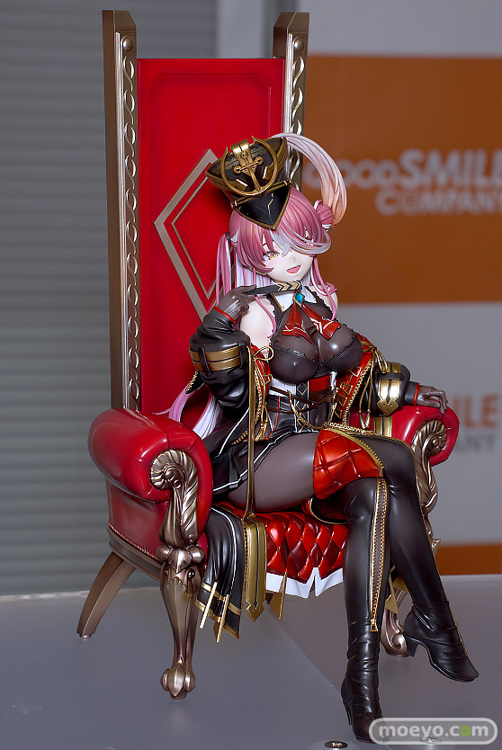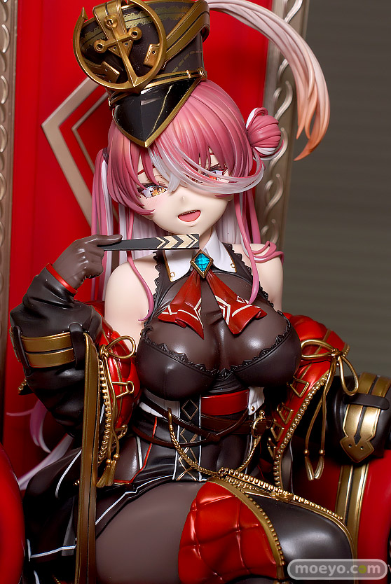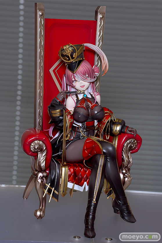 マックスファクトリーの新作美少女フィギュア「ホロライブプロダクション 宝鐘マリン 三十路衣装Ver.」が予約受付開始!『大人気バーチャルYouTuberグループ『ホロライブ』より、ホロライブ3期生「宝鐘マリン」が三十路衣装で登場!あかさあい氏のイラストを元に豪奢な椅子に挑発的に座るマリン船長を立体化しました。』というもので、原型制作はなかやまん(マックスファクトリー)さん。彩色は彩部一路さん。「2024 夏 ホビーメーカー合同展示会」の会場で展示されていた彩色サンプルの様子を、画像レビューとしてお伝えします!