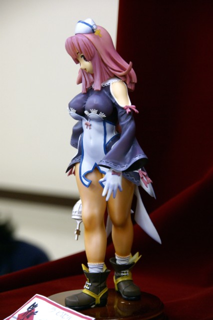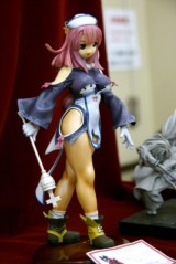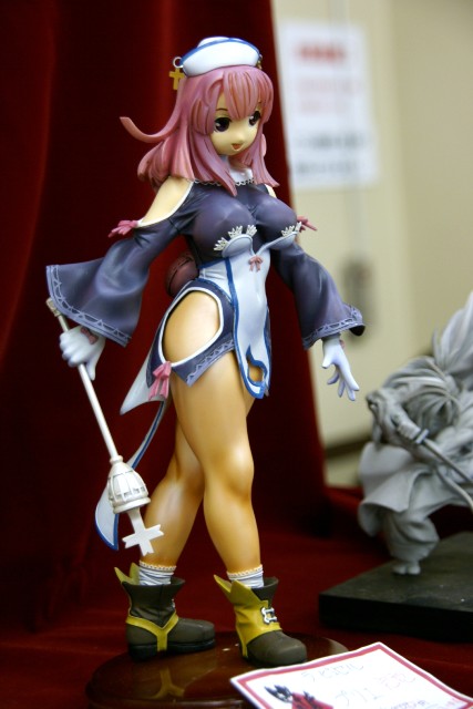 WHF横浜DASH-1での鉄虎竜ブースでは、新作の販売はなかったものの、「ラピュセルの1/7プリエ」の再販と、完成サンプルの展示がされていました。これは、日本一ソフトウェアのPS2用のシミュレーションRPG「ラ・ピュセル」の主人公「プリエ」を中山氏が立体化したもの。元イラストもかなりムチッとした絵柄なので、非常に中山氏の肉感的な作風にマッチしていましたよ〜!