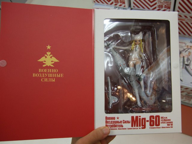 これは、2005年に開催された、BFCで発表されたもので、とらのあなの島田フミカネ氏がデザインした、コナミのメカ娘(第2弾リペ版参考レビュー)同様、「機械と女の子の融合」キャラを立体化したシリーズの第2弾で、あみあみの解説によると、「新進気鋭クリエイター島田フミカネ氏が生み出したキャラクターが完成品フィギュアとなって登場! 「メカ娘」改め「機械化歩兵シリーズ」としてMig60(通称ロシアさん)をリリースいたします! イベントでも好評だった今作、上半身はすけすけ服にネクタイ、下半身はスチール感溢れる仕上がりとなっていて、かわいらしさバツグン。機械と女の子の融合が見事に果たされています。世界観を広げる特製カラー冊子もついてきて、ご予約必須のアイテムとなりました。「メカ×少女」のニュースタイルをどうぞお見逃しなく! 」というもの。