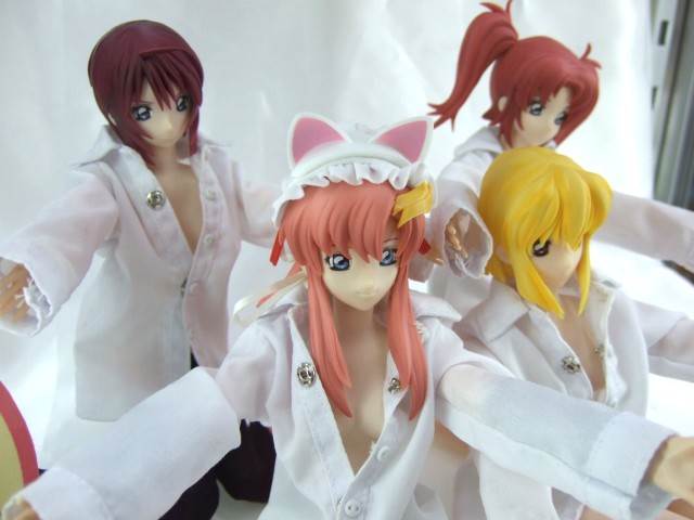 キャラシティ5Fでは、メガハウスのアクションフィギュアの「ルナマリア」(AA)(参考レビュー)、「ラクス」(AA)(参考レビュー)、「メイリン」(AA)(参考レビュー)、「ステラ」(AA)4種に、「葉月」(AA)付属のワイシャツを着せた展示が開始しています。