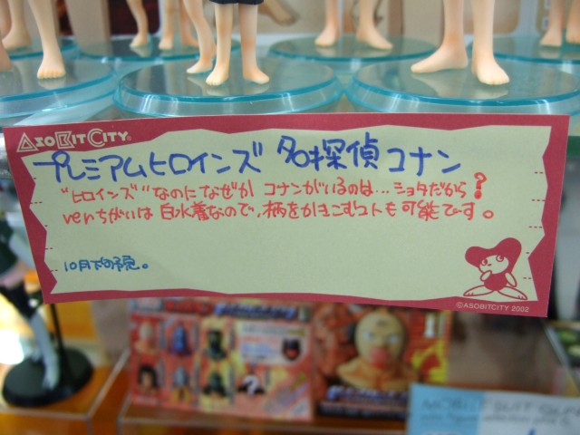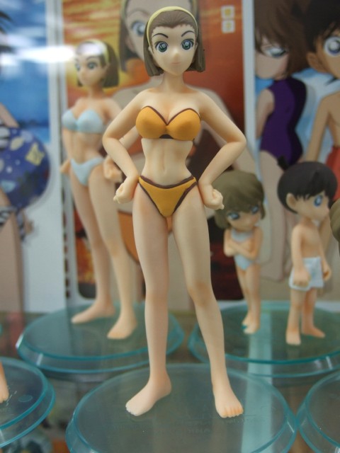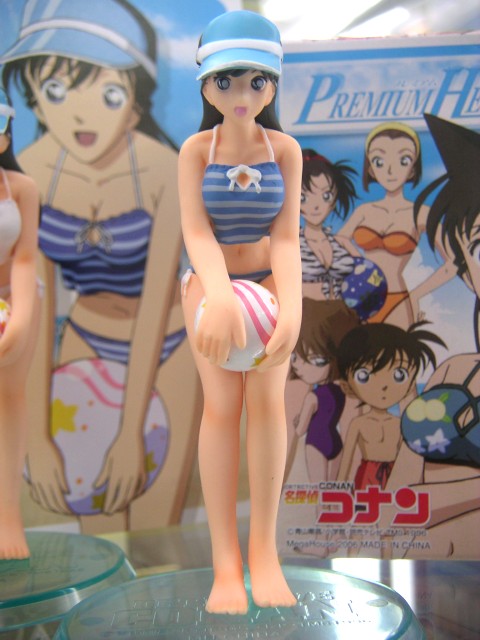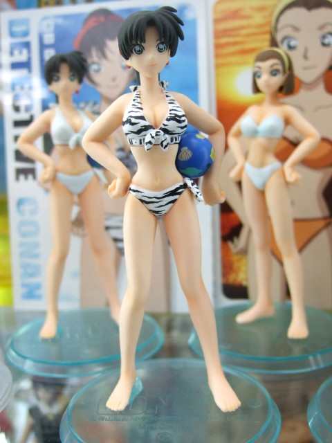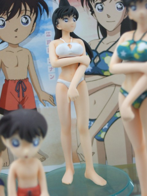 キャラシティにて、メガハウス「プレミアムヒロインズ 名探偵コナン」(AA)のサンプル展示が開始しています。これは、アニメ「名探偵コナン」に登場する、毛利蘭、鈴木園子、遠山和葉、灰原哀ら女性キャラ+1を、様々な水着姿で立体化したもの。「ヒロインズ」なのになぜかやろぅのコナンがラインナップにはいっていて、POPによるとその理由は「・・・ショタだから?」とのこと。