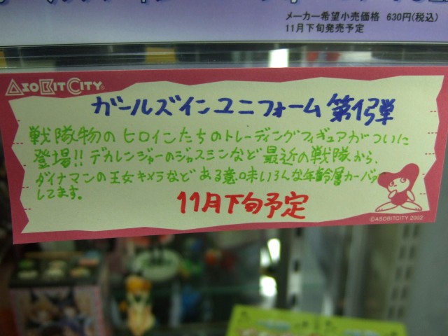 キャラシティのPOPによると「戦隊物のヒロインたちのトレーディングフィギュアがついに登場!!デカレンジャーのジャスミンなど最近の戦隊から、ダイナマンの王女キメラなどある意味いろんな年齢層カーヴァーしてます。」というもの。