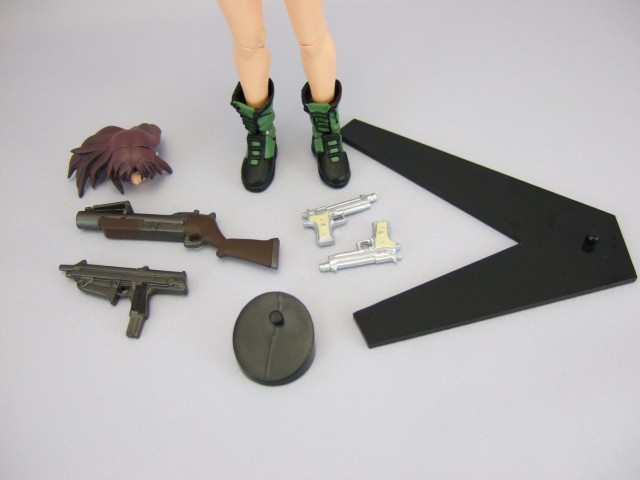 付属品一覧、前述のオプションヘッドに、ソードカトラス(拳銃)x2、WZ63マシンガン、グレネードランチャー、ディスプレイペースが付属します。