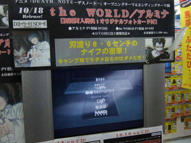 10月17日、アキバにて、アニメ「DEATH NOTE -デスノート-」の主題歌CD「the WORLD/アルミナ」(AA)が発売され、ゲームシティではPOPなどが展開されていました。