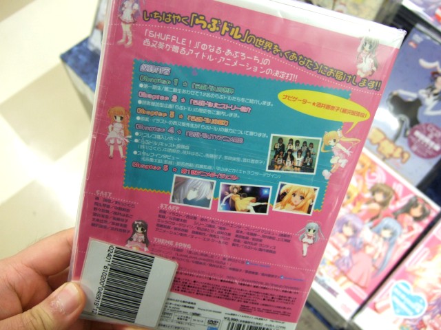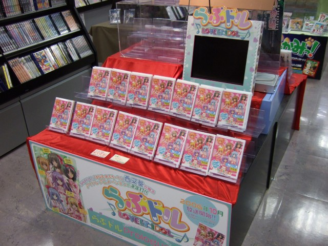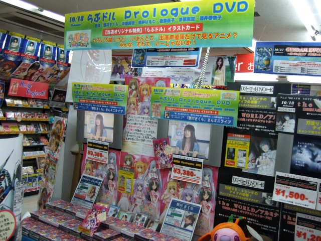ゲームシティではほか、初回特典として、西又葵氏イラスト写真集(28P)&特製収納BOXが付属する「らぶドル Prologued DVD」(AA)も発売されていて、エスカレーターでいる愚痴付近に巨大なPOPも展開されていました。