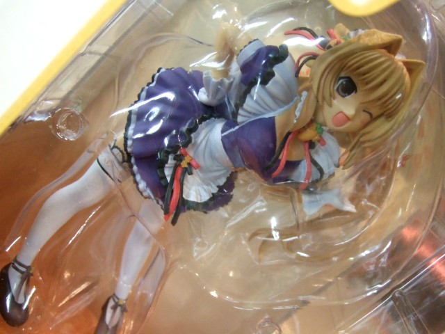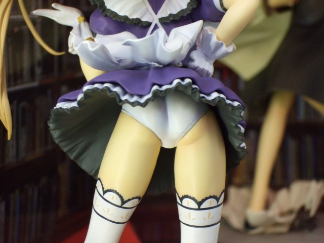 コトブキヤの商品説明によると「F&Cの大人気ファミレス恋愛AVGシリーズの最新作『Pia♥キャロットへようこそ!!G.O.』。 シリーズ最大のヒロイン・コスチューム数を誇る本作より、コスプレ大好き店長ヒロインの「木ノ下留美」が自身がデザインを手掛けたメイドタイプのコスチューム姿で大登場!!」というもので、パッケ上からは確認できないようになっていましたが、前かがみのポーズになっているので、後ろからだとぱんちゅまる見えとなり、デフォでスカートも外せる一品w