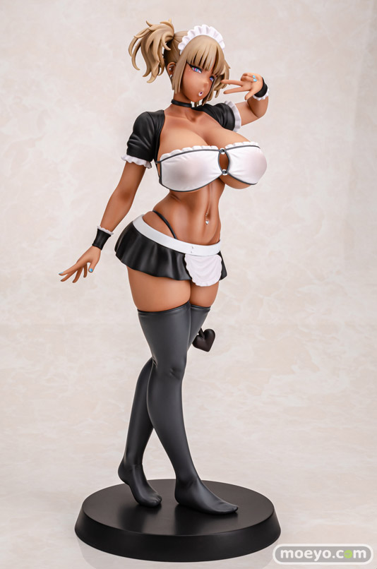 【アダルトフィギュア】Q-six「黒ギャルメイド淫魔、ごしゅを喰う。 黒ギャルメイド淫魔 ここあ」新作エロフィギュア製品版画像レビューQ-sixの新作エロフィギュア「黒ギャルメイド淫魔 ここあ」が発売中!『大人気作品『黒ギャルメイド淫魔、ごしゅを喰う。』より「ここあ」がフィギュア化!宮元一佐先生の描く引き締まりつつ柔らかな肉感が忠実に再現されています。ボリューム満点なお胸や腹筋、おへその造形が褐色肌で映える仕上がりとなっております!胸の水着とスカートは着脱可能な仕様になっており、お好きなスタイルで飾ることができます。』というもので、原型制作はノルグレコ(Q-six)さん。彩色見本製作はK2(GILLGILL)さん。製作協力はMouseUnitさん。その製品版の様子を、画像レビューとしてお伝えします!(アダルトフィギュアとなります!18歳未満の方は閲覧をお控えください。)