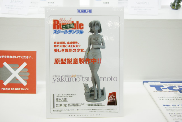 プラモデルラジコンショー2006でのウェーブブースでは、「ダーティペア」「塚本天満」などの、初サンプルお披露目や、サイト上ではまだ未公開の「沢近愛理」や「鴇羽舞衣」といった、初公開となる「トレジャーフィギュアコレクションシリーズ」の新作が多数展示されていました、他にもタチコマ関係の新作も出るなども。それらウェーブブースでの展示の様子をまとめてお伝えします。