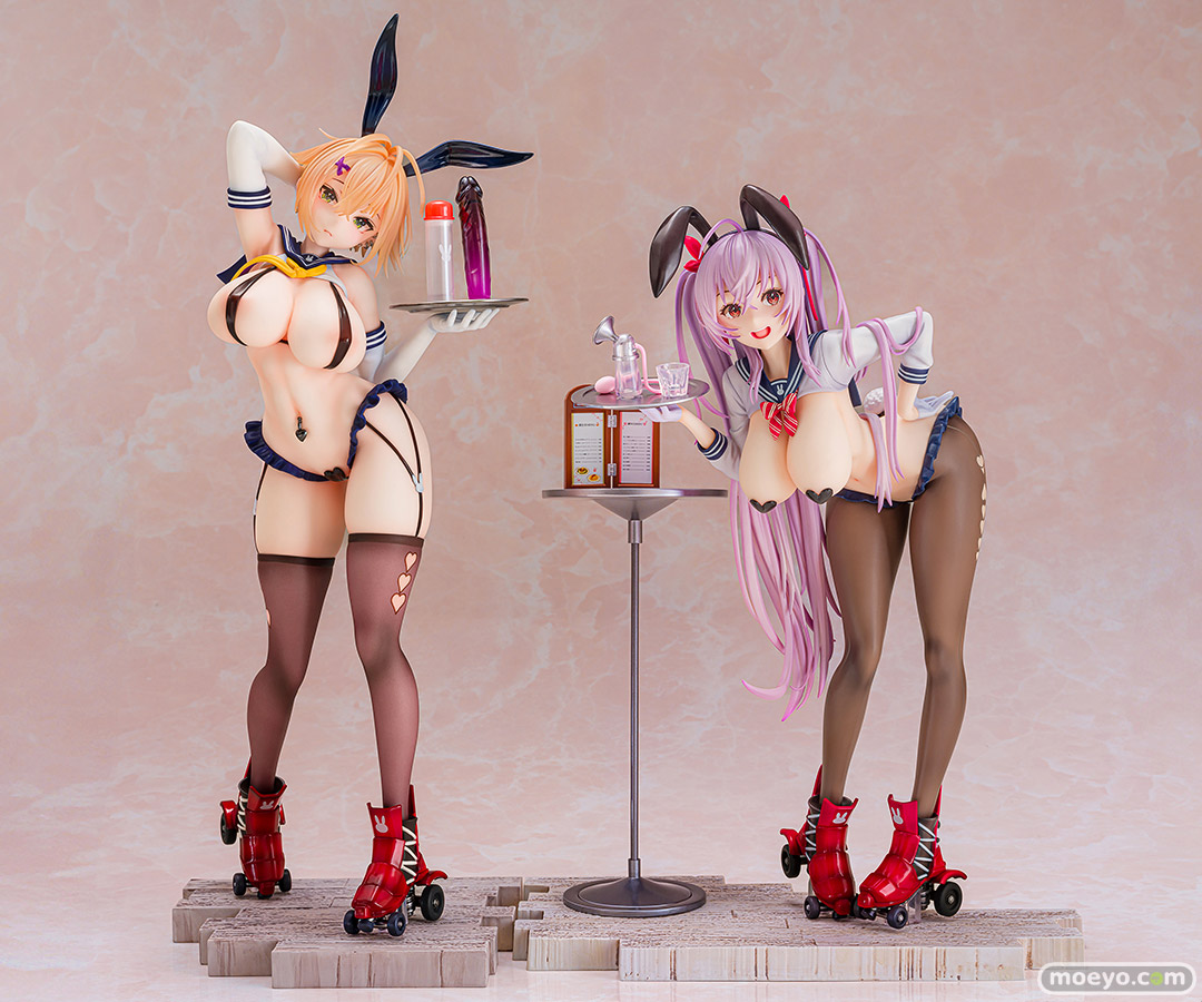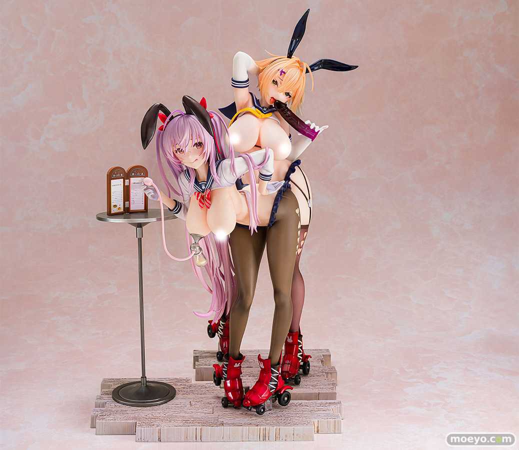 ロケットボーイの新作エロフィギュア「マッパニナッタ氏オリジナルキャラクター 後輩ちゃん」が予約受付中!『人気イラストレーター、マッパニナッタ氏が描く「後輩ちゃん」を立体化。前作「ツインテちゃん」の働いてる逆バニーカフェの後輩でツインテちゃんとはちょっと違う衣装となっております。ボリューム満点の胸や腰回りは必見です!胸、顔、左腕が差し替え可能となっており、セクシーな表情の後輩ちゃんを堪能できます。また、ディルド付き前貼りパーツも付属しており様々なシチュエーションを楽しめます!』というもので、原型制作はメンチさん。彩色制作はアラタさん。そのサンプルの様子を、画像レビューとしてお伝えします!(アダルトフィギュアとなります!18歳未満の方は閲覧をお控えください。)