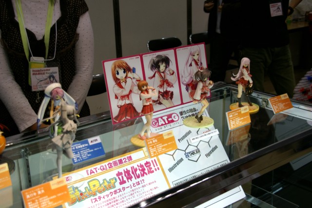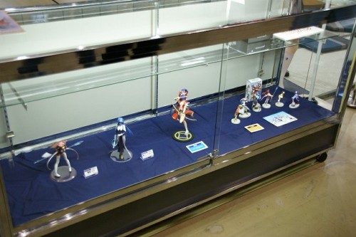 アリスソフトブースでの、アルター、海洋堂、とらのあなのフィギュア新作展示の様子。