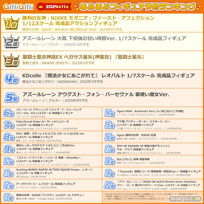 ※2024年11月1日から11月30日の期間中に予約開始されたフィギュアを対象として、自社独自の予約データ(予約数・金額など)を元にランキングを構成しています。