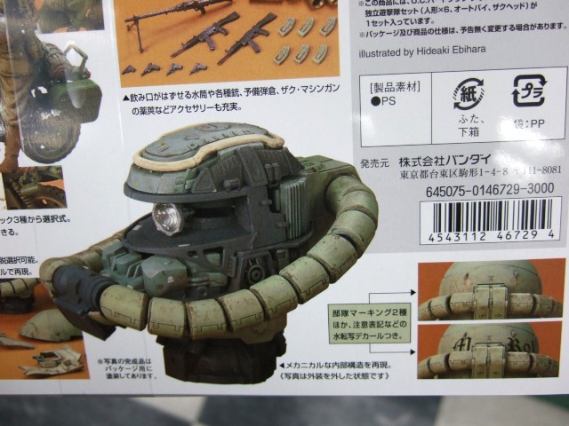 パッケ表。結構箱は厚みがありました。側面には、ディオラマ作例や、ザクヘッドパーツの内部構造など。