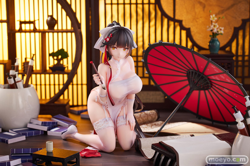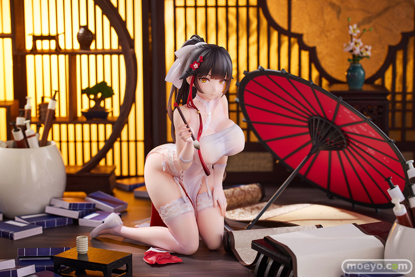 アルファマックスの新作美少女フィギュア「アズールレーン 高雄 ~春の習い ver.~」が予約受付開始!『大人気ゲーム「アズールレーン」より、『高雄』が登場!妖艶なチャイナドレス姿を大迫力の1/4スケールで細部まで再現し、立体化しました。豊満なボディーを際立てる大胆な衣装にと後姿からも感じられる引き締まったボディーライン。こちらを意識しながらちらっと見つめる表情まで忠実に再現いたしました。傘が付属パーツとしてあり、世界観を演出するこだわりの仕様としております。』というもので、原型制作はAXIAさん。彩色はLilanさん。そのサンプルの様子を、画像レビューとしてお伝えします!