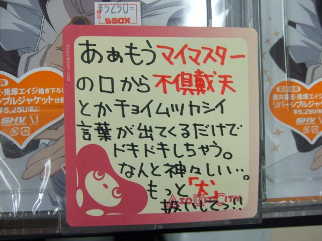 ゲームシティでは、「高飛車 ドジッ娘 絶対領域 貧乳 そして・・・ツンデレ 萌死だよな?」「ナマの声 余計なことなどいらない!」『もっと「犬」扱いしてっ!!』などと書かれたPOPが。