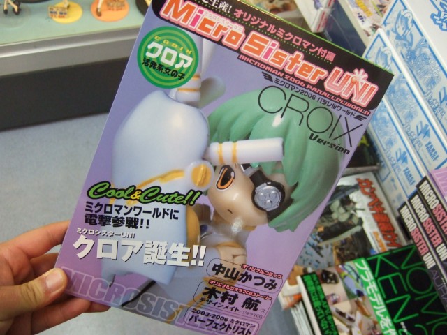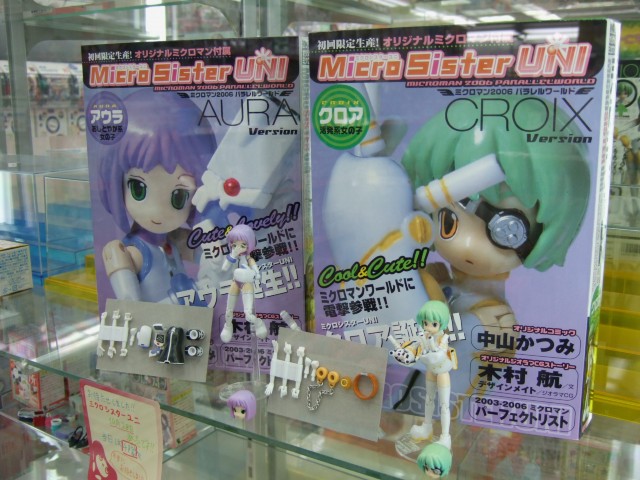 コトブキヤ秋葉原店では、8月発売予定から延期されていた、中山かつみ氏デザインのプニロリミクロマン×中山かつみ氏&菅野博之氏のコミック×木村航氏の小説がセットになった、一迅社「Micro Sister UNI ミクロマン2006 パラレルワールド」の「クロア Version」(AA)と「アウラVersion」(AA)の2種が発売されていました。