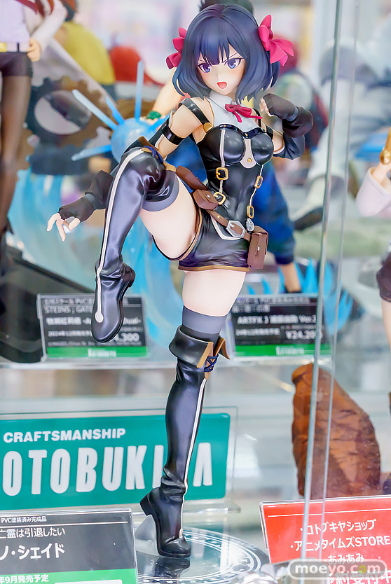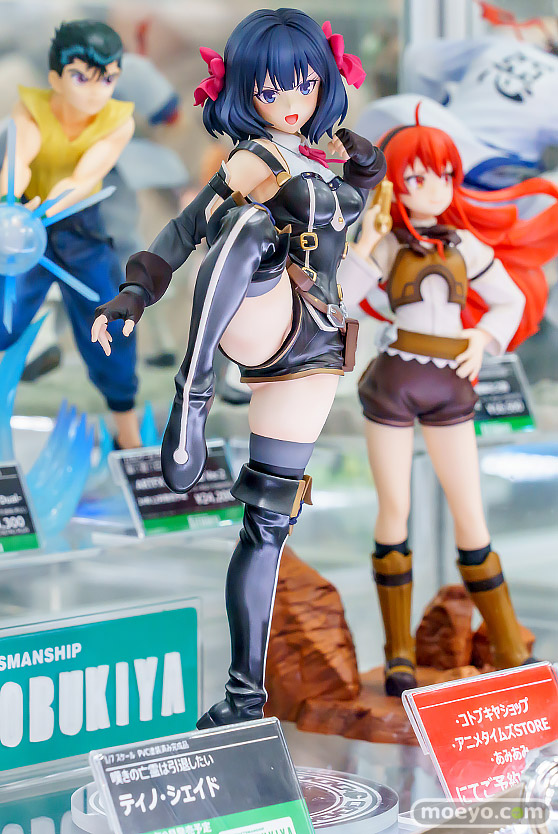 エイベックスの新作美少女フィギュア「「嘆きの亡霊は引退したい」「ティノ・シェイド」」の彩色サンプルが、あみあみ 秋葉原ラジオ会館店で展示!『TVアニメ「嘆きの亡霊は引退したい」より、主人公クライ・アンドリヒの後輩、ティノ・シェイドがフィギュア化!原作者の槻影先生、キャラクター原案のチーコ先生も監修に加わった、ファン必携のこだわりの逸品です。色んな表情を見せるティノを、足技を放つ緊張感のあるポーズでフィギュア化。複雑な衣装は塗装やしわの造形を使い分け、リアルな存在感を目指しました。』というもので、原型制作はしゅるふとさん。製作協力はKOTOBUKIYAさん。その展示の様子を画像レビューとしてお伝えします!
