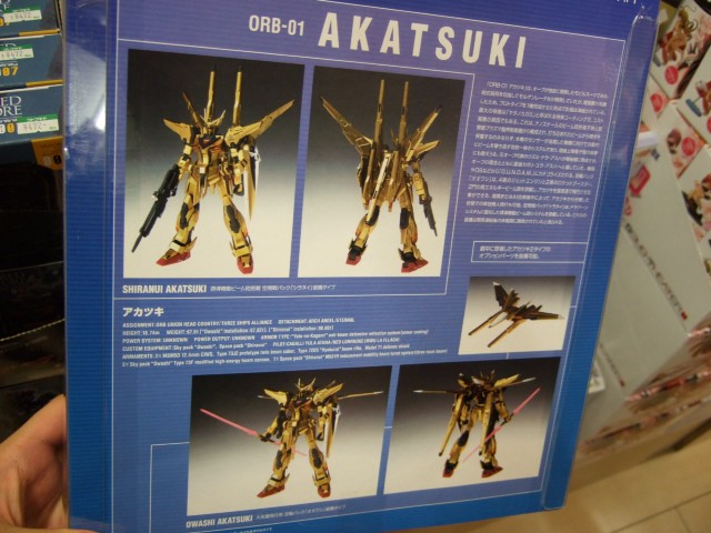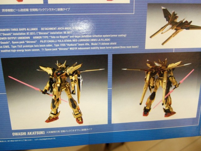 Amazonの解説によると『「機動戦士ガンダムSEED DESTINY」に登場した、オーブ製のMS「アカツキ」が登場。2種の背部ユニット「オオワシ」と「シラヌイ」が付属します。』というもの。