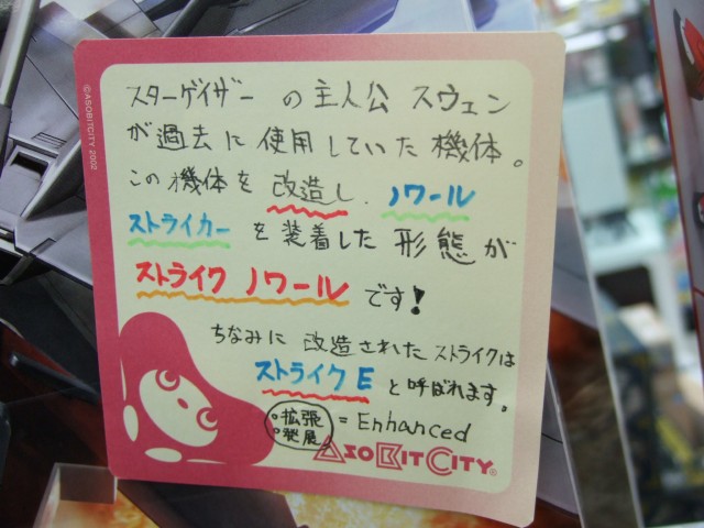 また、商品にはられていたPOPによると「スターゲイザーの主人公スウェンが過去に使用していた機体。この機体を改造し、ノワール、ストライカーを装着した状態がストライクノワールです!」とのこと。