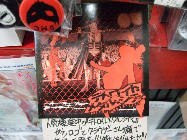 コトブキヤ秋葉原店ではDMCグッズが販売されていますが、おそらく店員さんが購入された際についてきたと思われる、とらのあな購入特典の「神ジャケット」が展示されていました。