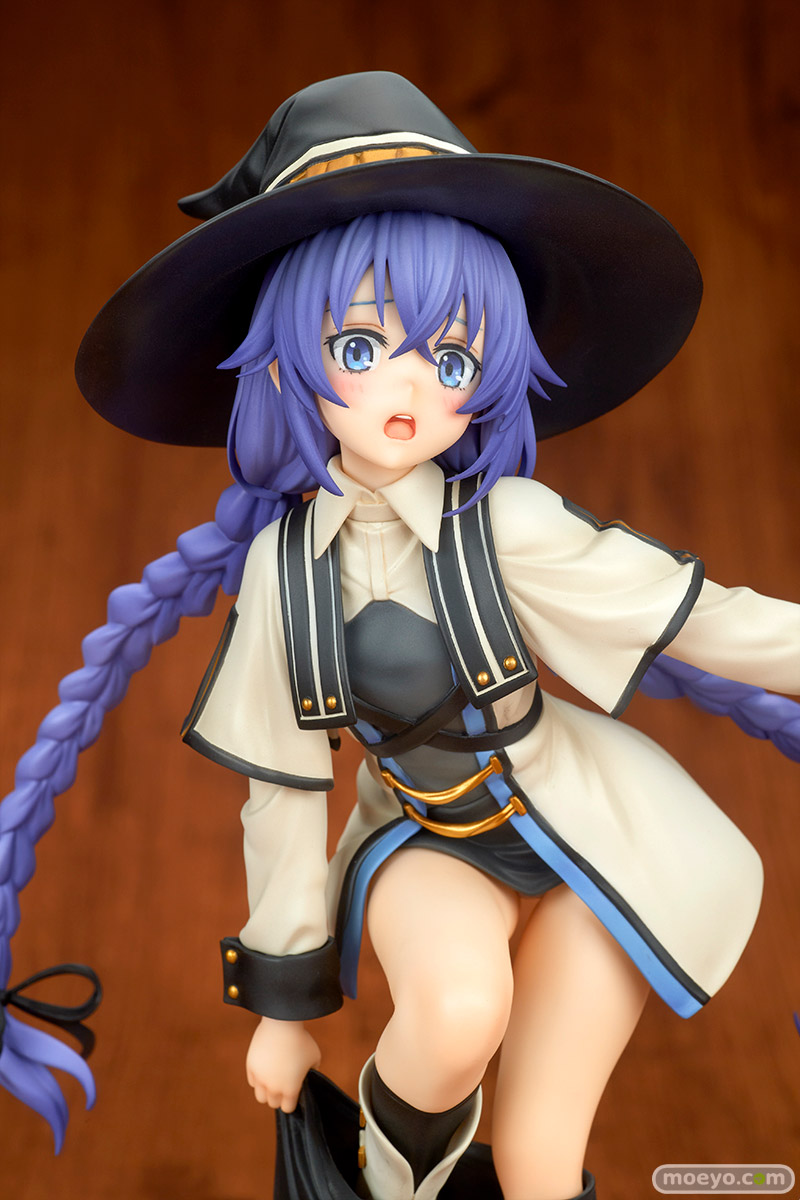 キューズQの美少女フィギュア「無職転生 ~異世界行ったら本気だす~ ロキシー・ミグルディア お着替えmode」の再販が決定!予約受付開始しました!『大人気アニメ「無職転生 ~異世界行ったら本気だす~」から、ルーデウスの師匠、ロキシーが登場。何らかのアクシデントで、急いでスカートを脱ごうとしている(しかも帽子や靴より先に!)とは、彼女にいったい何が・・・? 恥じらう表情と、奇抜なシチュエーションが楽しいフィギュアです。』というもので、原型制作はにゃばーさん。彩色製作はえこしさん。そのサンプルの様子を、画像レビューとしてお伝えします!