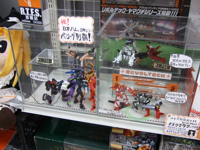 以前、ロケ地 ナメック星や、祝!日本ハム25年ぶりパ・リーグ制覇!もあったとらのあな本店では、11月15日発売となる、海洋堂のリボルテック第7弾「No.14 イングラム2号機」(AA)と「No.15 ソルティック」(AA)のサンプル展示が開始しています。