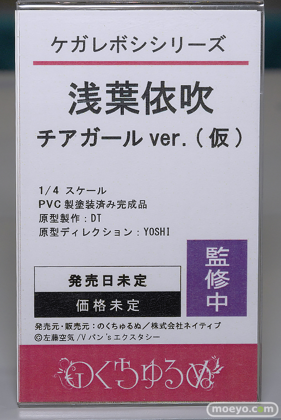 のくちゅるぬ「ケガレボシ シリーズ 浅葉依吹 チアガール ver. (仮)」(監修中原型) ▲同シリーズの「白崎小春 チアガール ver.(仮)」と並べて展示されていました。 *掲載の展示アイテムは原則的に監修中や製作中のものとなります。 実際の商品とは若干異なる場合がございますので、予めご了承ください。 撮影:いつもの友人 文:もんぷち。 関連 ■コミックマーケット ■佐藤空気さんX ■のくちゅるぬ ©佐藤空気/V パン’s エクスタシー