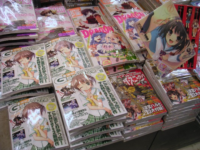 今月もアキバの書籍取扱店では、店頭平段などに大量の新発売雑誌が並べられていました。