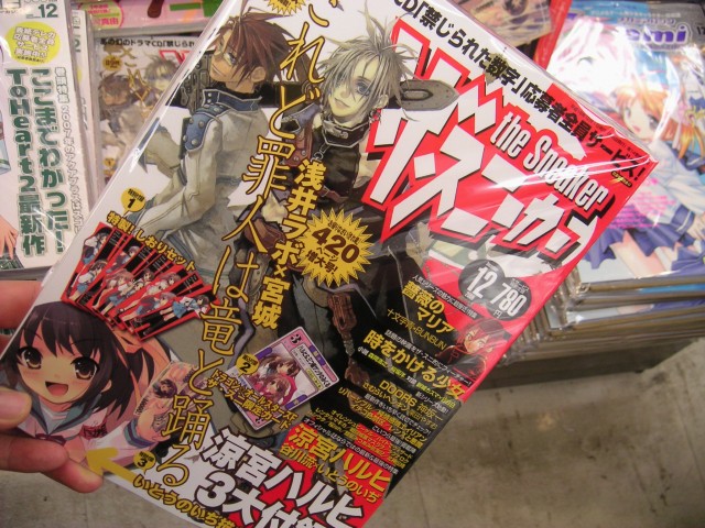 30日に「メガミマガジン 12月号」(AA)が発売となり、今回掲載のハルヒイラストは、ゴスロリ衣装を着たもの。ゲーマーズ本店では、そのハルヒのイラストを展示し、POPには「ハルヒしゃまのゴ・ゴ・ゴシュロリィ〜」とされていました。ほか、「電撃G’smagazine 12月号」(AA)、「ザ・スニーカー 12月号」(AA)など、30日に見かけたフィギュア付、気になったおまけ付の雑誌をまとめて。