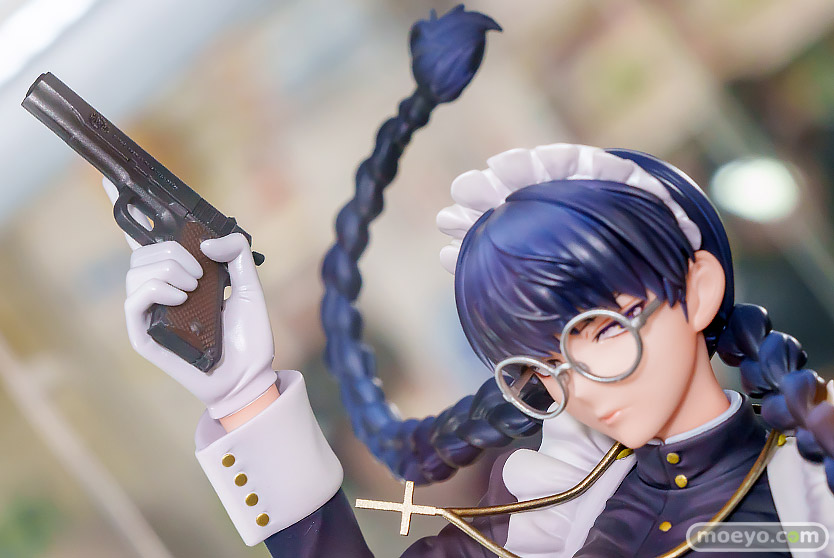 こだわり抜いた銃火器の造形と柔らかな衣装の質感、繊細な彩色の仕上がりにもご注目ください。メガネの奥に光る静かな殺意と、優雅ながらも力強いボディラインから目が離せない。