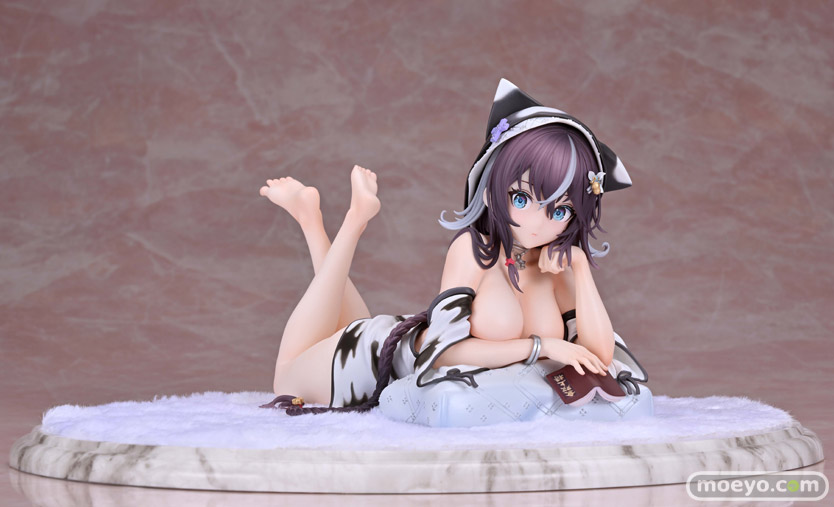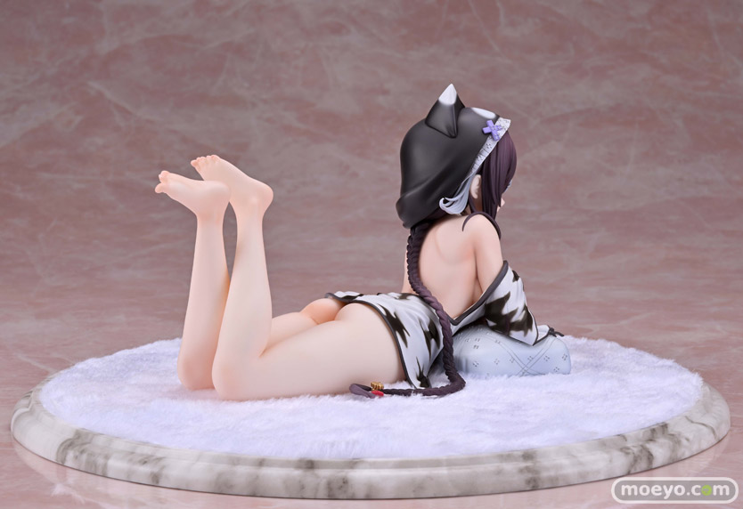 回天堂の新作美少女フィギュア「放置少女 ~百花繚乱の萌姫たち~ [寝起き] 潘鳳(ハンホウ)」が予約受付開始!『PCおよびスマートフォン向けRPG『放置少女』より、副将・潘鳳を[寝起き](URアバター)の大きく背中が開いたセクシーパジャマ姿でフィギュア化!大きく開いた背中。豊満な胸元と隙間から覗き見えるワキから胸にかけてのライン。ミニ丈のパジャマからスラリと伸びた脚。元イラストの柔らかさやしっとりしたみずみずしさを感じる肉感豊かなバスト・ヒップ等ボディラインの再現にこだわりました。』というもので、原型制作はモワノーさん。彩色は税所さん。そのサンプルの様子を画像レビューとしてお伝えします!