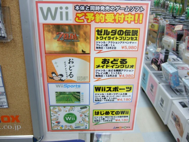 本体のほか、周辺機器や、「ゼルダの伝説 トワイライトプリンセス」などの、同時発売となるゲームの予約受付も開始していました。