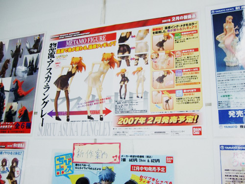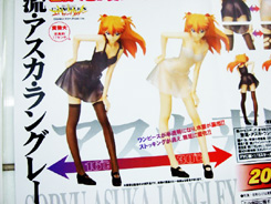 キャラシティ1Fのガチャコーナー付近に、バンダイ の「メタモフィギュア 新世紀エヴァンゲリオン 惣流・アスカ・ラングレー」(AA)のPOPが掲示されていることに気がつきました。これは、「温度で色が変わる、温感フィギュア!」とうたわれている、「メモリー機能」を搭載した「温感インク・メタモカラー」塗料を用いて、アスカのドレスが30度以上に暖めると透けてしまうというフィギュア。