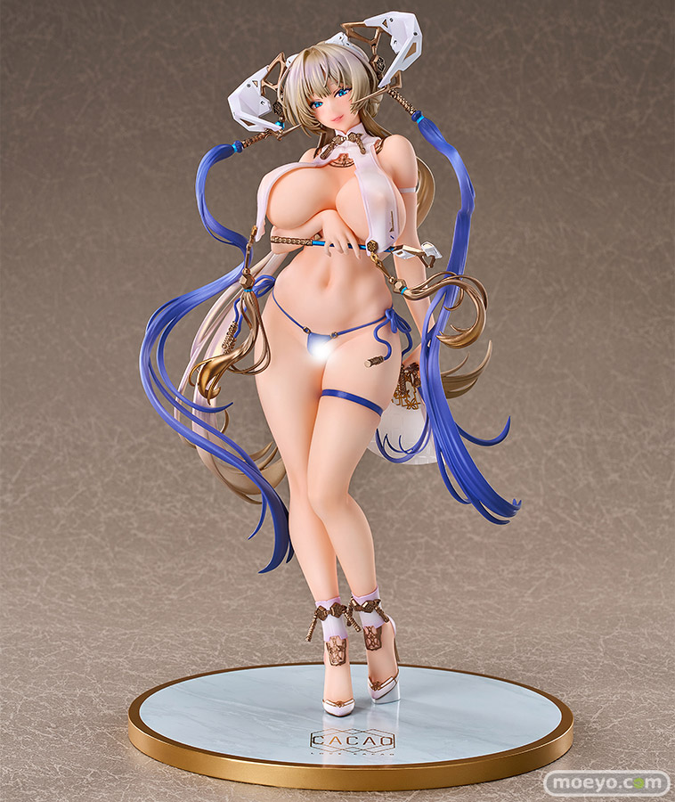Unboundの新作エロフィギュア「LOVECACAOオリジナルキャラクター 月龍 MOONDRAGON」が予約受付開始!『人気イラストレーターLOVECACAO氏の描き起こしイラスト「月龍」が1/7スケールで登場。サイバー風機械&人形少女という、ニューファッション×オールドファッションのインパクト。ベージュ色の髪に青い瞳、むっちむちの太ももや魅惑的な胸……しとやかな指で煙管を持ち、肉感の溢れるポージング、月の光を浴びてる繊細な髪の流れなど、頭から爪の先まで柔らかな曲線で彼女の姿はまさに美の化身。まるで月光と共に舞っている龍のように、元イラストの美しさをそのままお届けします。』というもので、原型制作はNenekoさん。彩色制作はAouさん。そのサンプルの様子を画像レビューとしてお伝えします!(アダルトフィギュアとなります!18歳未満の方は閲覧をお控えください。)