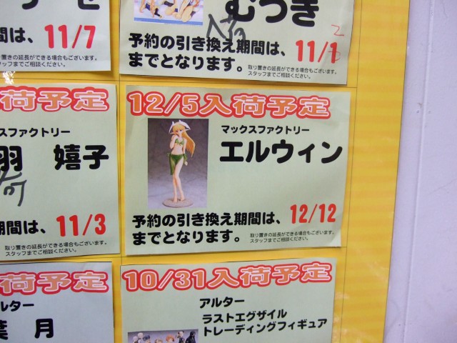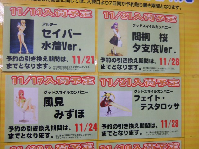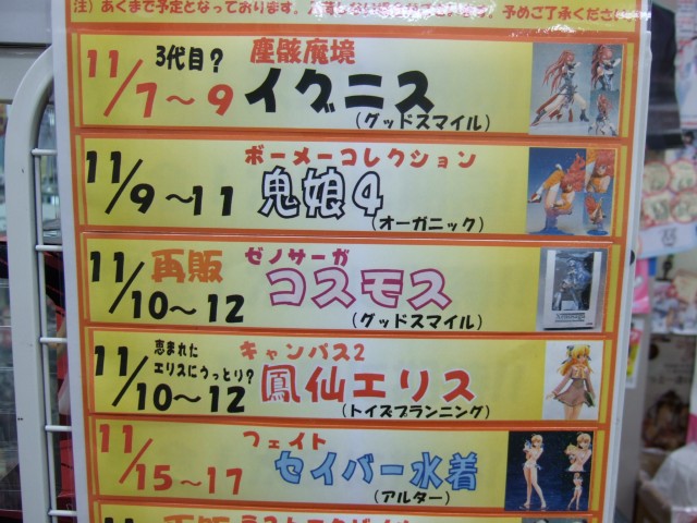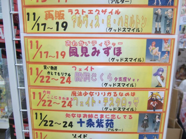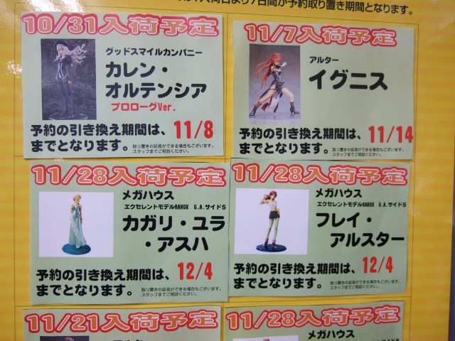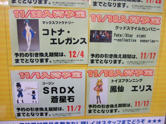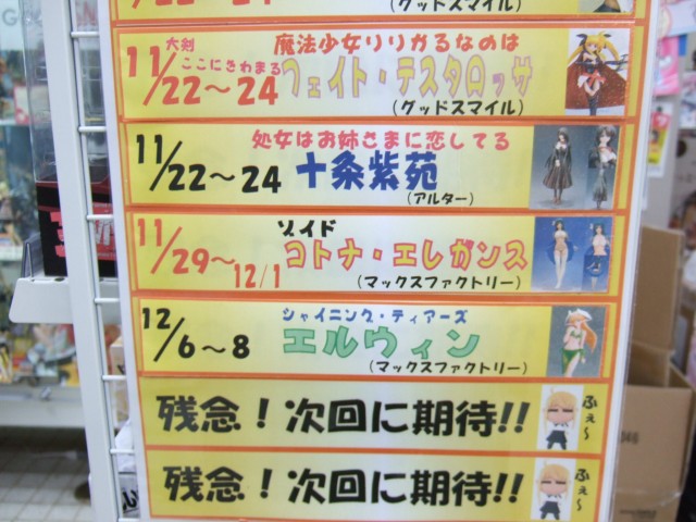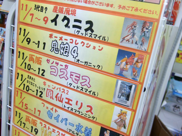 こちらはキャラシティの11月新作入荷予定表の掲示の様子。