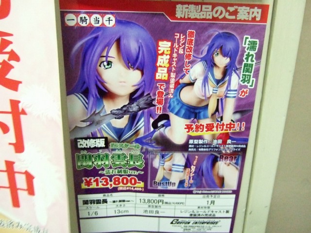 掲示されていた、グリフォン「一騎当千 関羽雲長 濡れ制服ver. 改修版」(AM)のPOP。