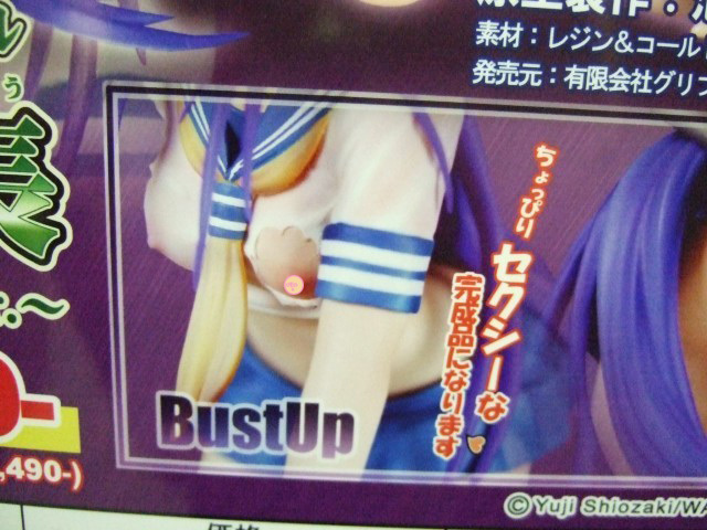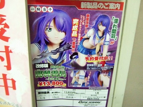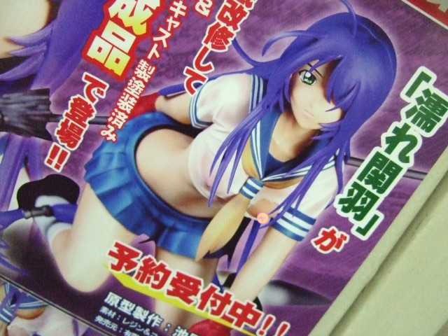 コトブキヤ秋葉原店にて、サンプル画像にBACKがあったガレキの「関羽濡れ制服ver.」(AA)をレジン&コールドキャスト完成品とした、グリフォン「一騎当千 関羽雲長 濡れ制服ver. 改修版」(AM)の予約POPが掲示されていることに気がつきました。POPによると、ガレキ版から「徹底監修」したらしく、一番目立つ違いは、右乳の透け具合アップと、左乳の服が破けて乳ポロしてるとこ。