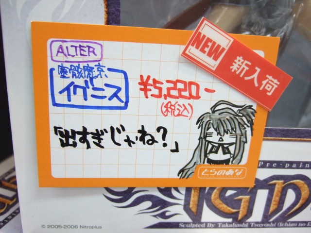 とらのあな本店でも入荷していました。イグニスは海洋堂版マックス版がすでに発売され、このアルター版で3つ目のPVC完成品化となることからか、ヘタレPOPには「出すぎじゃね?」とかかれていました。
