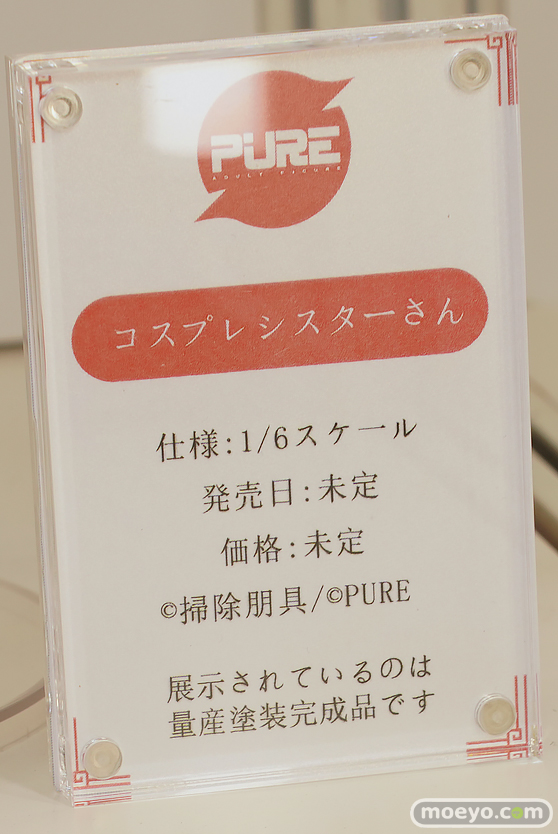 PUREの新作エロフィギュア「コスプレシスターさん Illustrated by 掃除朋具」の彩色サンプルが、「ワンダーフェスティバル2024 [夏] 」の会場で展示!『人気イラストレーター掃除朋具氏のオリジナルキャラクター「コスプレシスターさん」が1/6スケールフィギュアになって登場です!』というもので、特典として原画色紙と原画タペストリーが付属します。その展示の様子を画像レビューとしてお伝えします!(アダルトフィギュアとなります!18歳未満の方は閲覧をお控えください。)
