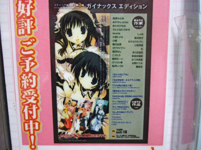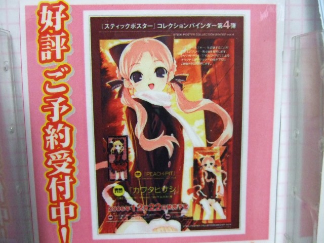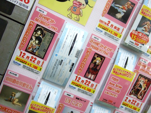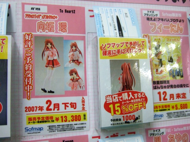 ソフマップ本店では、スティックポスター「GAINAXエディション」と、スティツクポスターバインダー「PEACH-PIT Ver.」「カワタヒサシ Ver.」、メガハウス「アクションフィギュアコレクション+ToHeart2 向坂環 」(AA)の予約受付が開始していました。