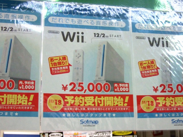 ソフマップ本店では、Wiiの予約を11月18日に開始予定というPOPが。