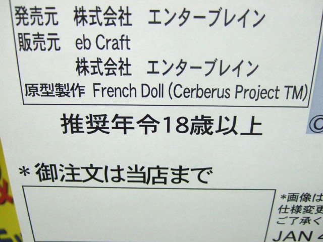 大阪プラスチックモデル限定らしい、ebCraftの「1/6 こより(戦国ブレード)」(SA)ですが、コトブキヤ秋葉原店にPOPが追加されていて、そこに「推奨年齢18歳以上」と明記されていたので、これはやはり・・・期待していいのかしら?w