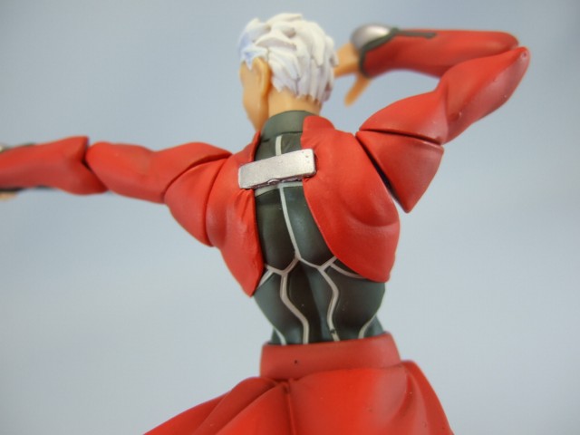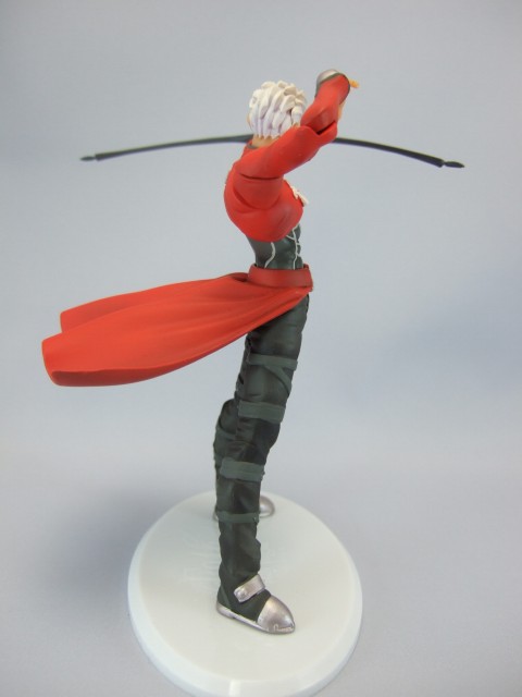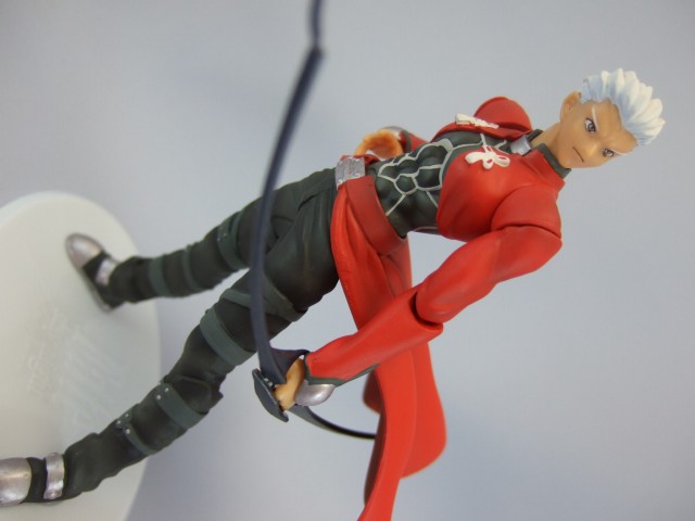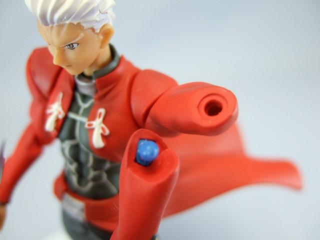 肘が動かないので、そんなに色々なポーズはつけられませんが、ランサーらしい余裕のあるポーズを再現するには、やはり腕がびっとまっすぐ伸びていないと決まらないという部分もあるので、これはこれでいいのかも〜。