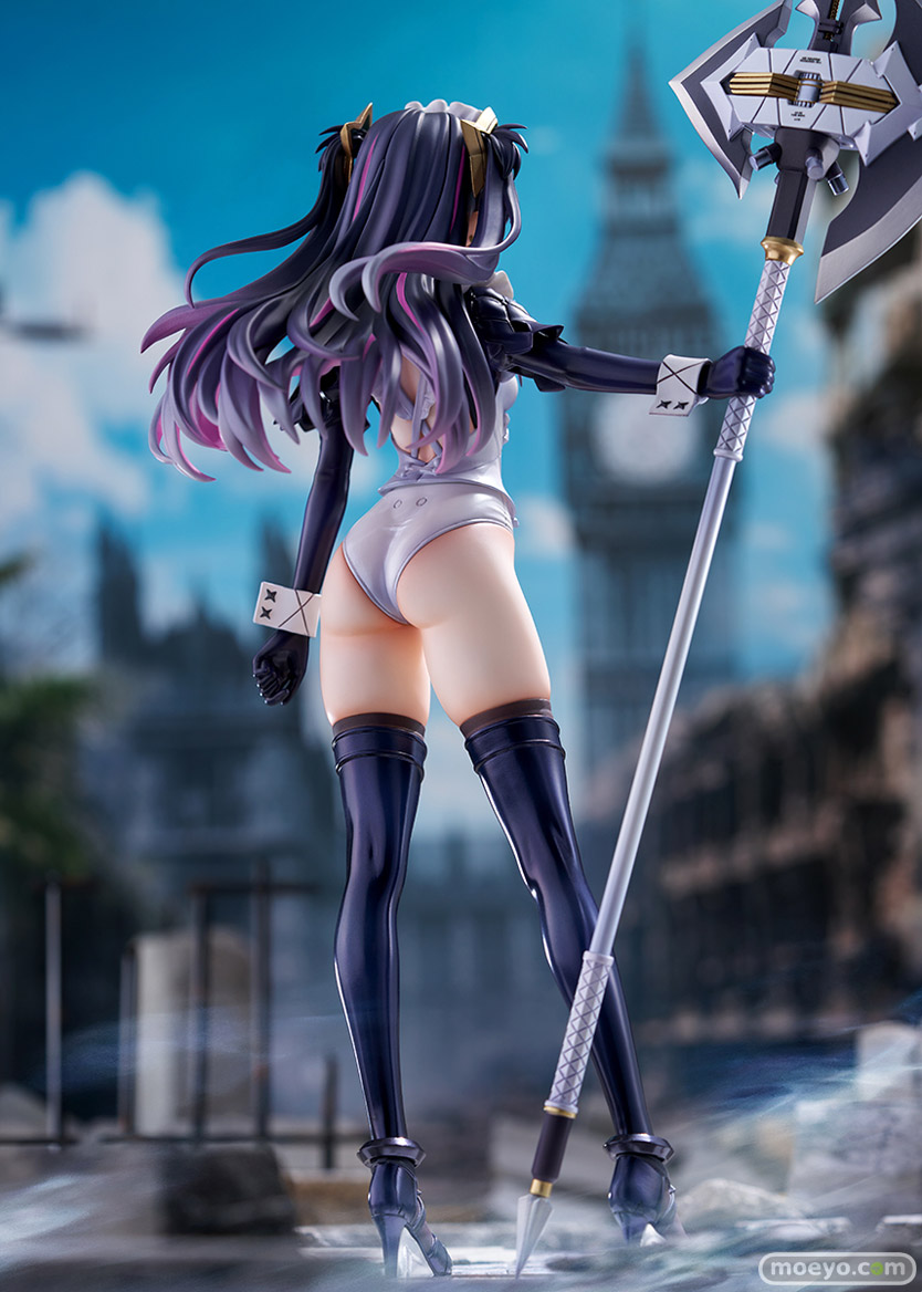 スカートは脱着可能。キューズQ新作美少女フィギュア「火星第13区所属 中近接戦闘型M.A.I.D メアリー」予約受付開始!キューズQの新作美少女フィギュア「火星第13区所属 中近接戦闘型M.A.I.D メアリー」が予約受付開始!『人気イラストレーターSiino氏の描くオリジナルキャラクター「メアリー」がフィギュア化!メイド風のコスチュームからスラリと伸びる美脚が魅力的!巨大なハルバートを携えたデザインが、力強さをも感じさせます。スカートは脱着可能で、ひと味違ったスタイリングもお楽しみいただけます。』というもので、原型制作は三吉さん。彩色製作はアンドウケンジさん、えこしさん。イラストレーターはSiinoさん。そのサンプルの様子を画像レビューとしてお伝えします!