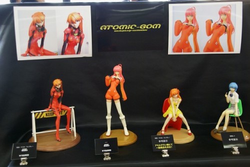 G.K.ism.での、atomic-bomブースでは、今回、新作はなかったものの、アミエグランから一般商品化が決定したという、「`05 ドレスアスカ」をはじめ、「`06 プラグスーツアスカ」や、参考出展の「iP●Dレイ」、「`05 ノノ」など、4点の彩色サンプルが展示されていました。エヴァものは、貞本氏のイラストの、あの独特な雰囲気まで再現されたような、本当に素晴らしいものでした〜!