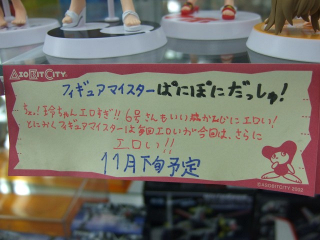 キャラシティのPOPによると、「ちょ!玲ちゃんエロすぎ!!6号さんもいいかんじにエロイ!とにかくフィギュアマイスターは毎回エロイが今回は、さらにエロイ!!」とのこと。