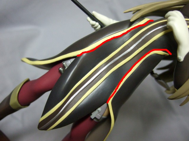 ちなみに、スカートは見た感じ、赤で引いたラインの位置で分割されているみたいなので、うまく剥がせばスリット状態も可能かも?