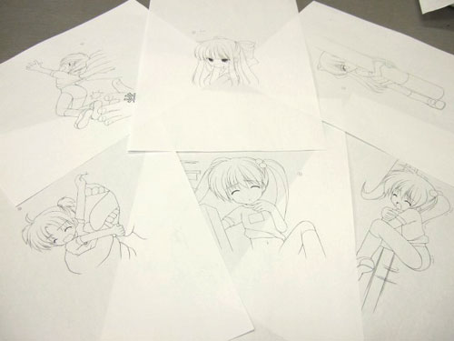 ぷれい☆ステーショナリー公式や、とれたて!ほび〜ちゃんねるでも原画イラストが公開されていますが、こちらではそれとは一部別の原画イラストと、さらにラフイラストも一部公開しています。